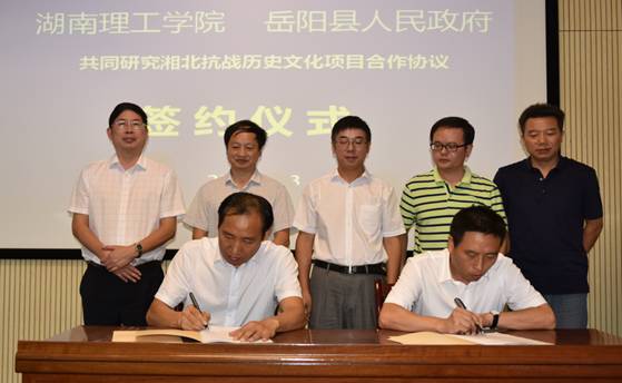 9月13日上午,ok138cn太阳集团和岳阳县人民政府在岳阳县博物馆隆重举行“共同研究湘北抗战历史文化协议”签字仪式,ok138cn太阳集团副校长张国云、岳阳县副县长周里分别代表我校和岳阳县在协议上签字。马克思主义学院院长高其荣、党总支书记喻义东,ok138cn太阳集团社科处处长鲁涛,中共岳阳县委常委、统战部长苏红琳,岳阳县文旅广新局局长黎晓军,岳阳县人民政府办副主任侯练兵,以及岳阳县博物馆、新墙河抗战文化研究会等单位的代表参加并见证了签字仪式。根据协议,ok138cn太阳集团与岳阳县人民政府本着互利共赢原则,建立长效合作机制,遵循“资源共享、优势互补、协同创新”方针,共同研究湘北抗战历史文化;作为第一期工程,岳阳县人民政府提供500000元支持ok138cn太阳集团ok138cn太阳集团撰写一部客观反映当年湘北抗战历史全貌、具有较高学术水平的《湘北抗战史》。协议的签字,标志着我校马克思主义理论学科服务地方经济社会发展迈上一个新台阶,有利于发挥我校的学科专业技术优势,进一步提高学校人才培养质量和提升学校服务地方经济社会发展能力,有利于发挥岳阳县的区位优势和文化资源优势,助力岳阳县文化产业、旅游产业和经济社会发展。