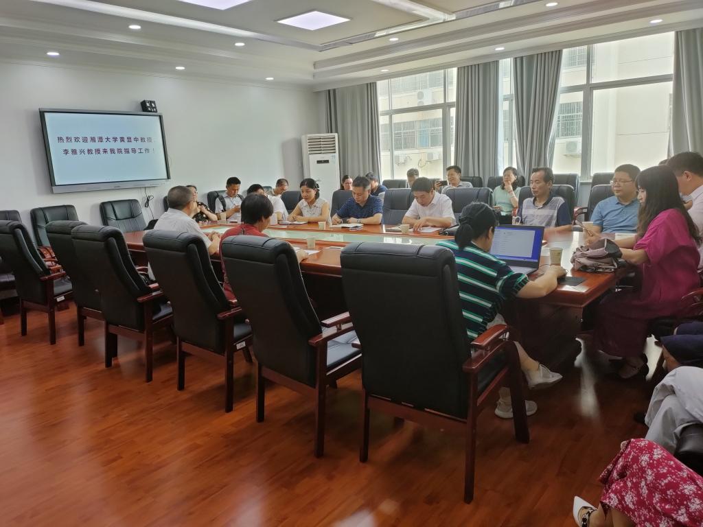 7月6日上午,湘潭大学博士生导师黄显中教授、李雅兴教授应邀来我院指导硕士点建设工作。学院全体老师参加座谈交流。