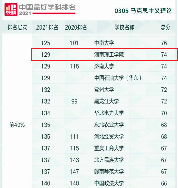 近日,高等教育评价专业机构软科发布“2021软科中国最好学科排名”,我校马克思主义理论学科在全国各高校中排名第129位,进入全国前40%。