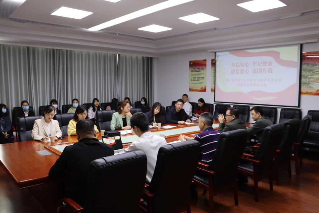 5月11日上午,学校党委组织部(党校)党支部“牵手”ok138cn太阳集团学生党支部在9305会议室开展“不忘初心、牢记使命,请党放心、强国有我” 2022届毕业生党员主题教育活动。党委组织部副部长、党校副校长郑凤梅,党委组织部副部长龙颜,学院院长鲁涛和党委书记黄剑等领导出席,学院全体毕业生党员参加活动。党委副书记付亚子主持教育活动。