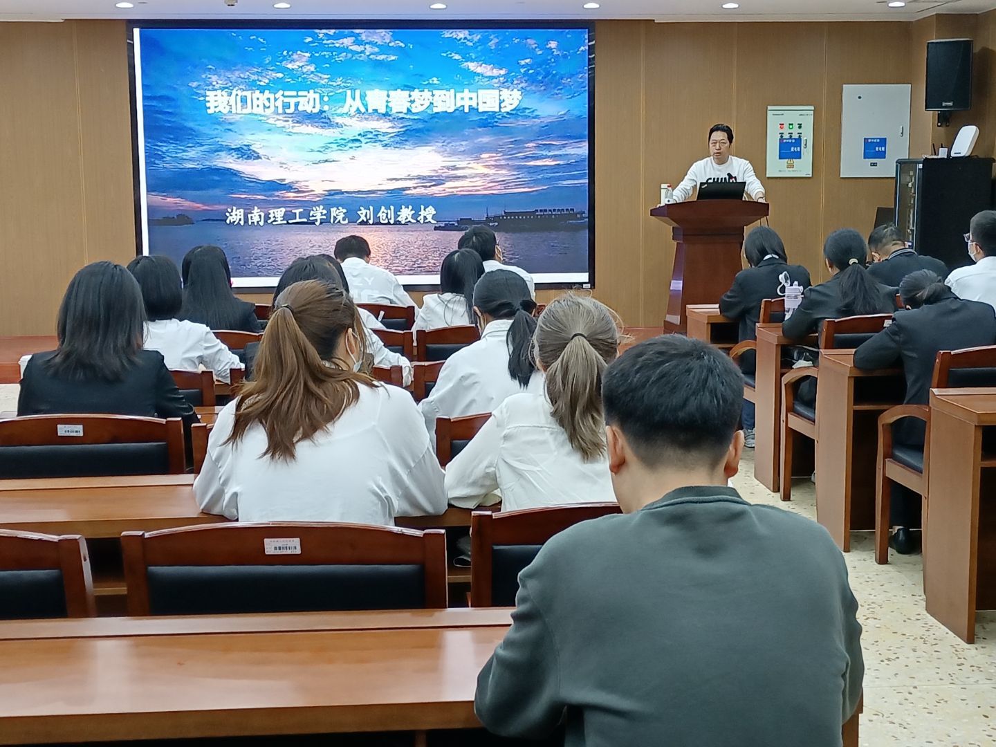 刘创教授以“我们的行动:从青春到梦想”为主题,论述了当代青年大学生应具备的精神境界和个人品德。他认为,大学生要做君子和政者。他解释道“君子不器”,成为君子要心怀天下、博学多识、全面发展、谦逊恭谨,拥有仁厚、智慧 、有勇气的良好品德;政者即正者,正者要做到心正和身正,树立正确的三观,时刻注意自己的言行。他提出,当代大学生要有宁静的心灵、博大的情怀,要有对美的追求,不能只生活在物质世界里,要更多的生活在精神世界里,生活在理想与信念中,追求真正的共产理念。最后,他对入党积极分子提出要求,要培养正确的价值观,主动担负起实现中国梦的使命,心系祖国,牢记初心和使命,发奋成才,全面提升自身素质,立志报效祖国,不负青春、不负梦想,为实现中国梦贡献自己的青春力量。