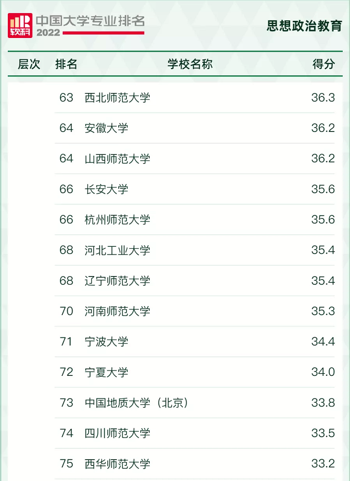 近日,高等教育专业评价机构软科今日正式发布2022“软科中国大学专业排名”,我校思想政治教育专业在全国高校中排名第103位。