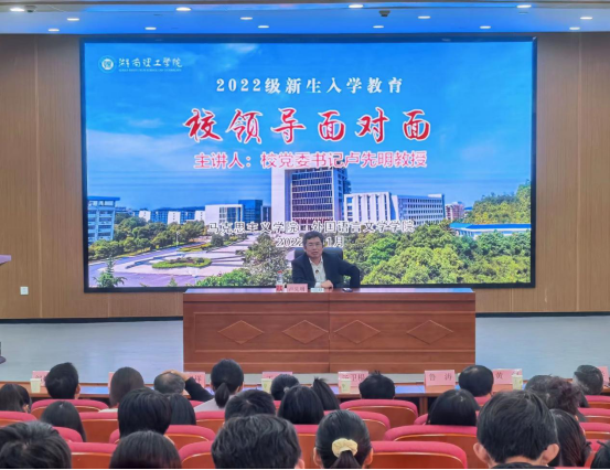11月4日下午,我院和外语学院合作举办新生入学教育活动,校党委书记卢先明在17118会议室与我院和外语学院全体本科和硕士研究生新生开展面对面交流座谈。外语学院党委书记王敏主持座谈会。