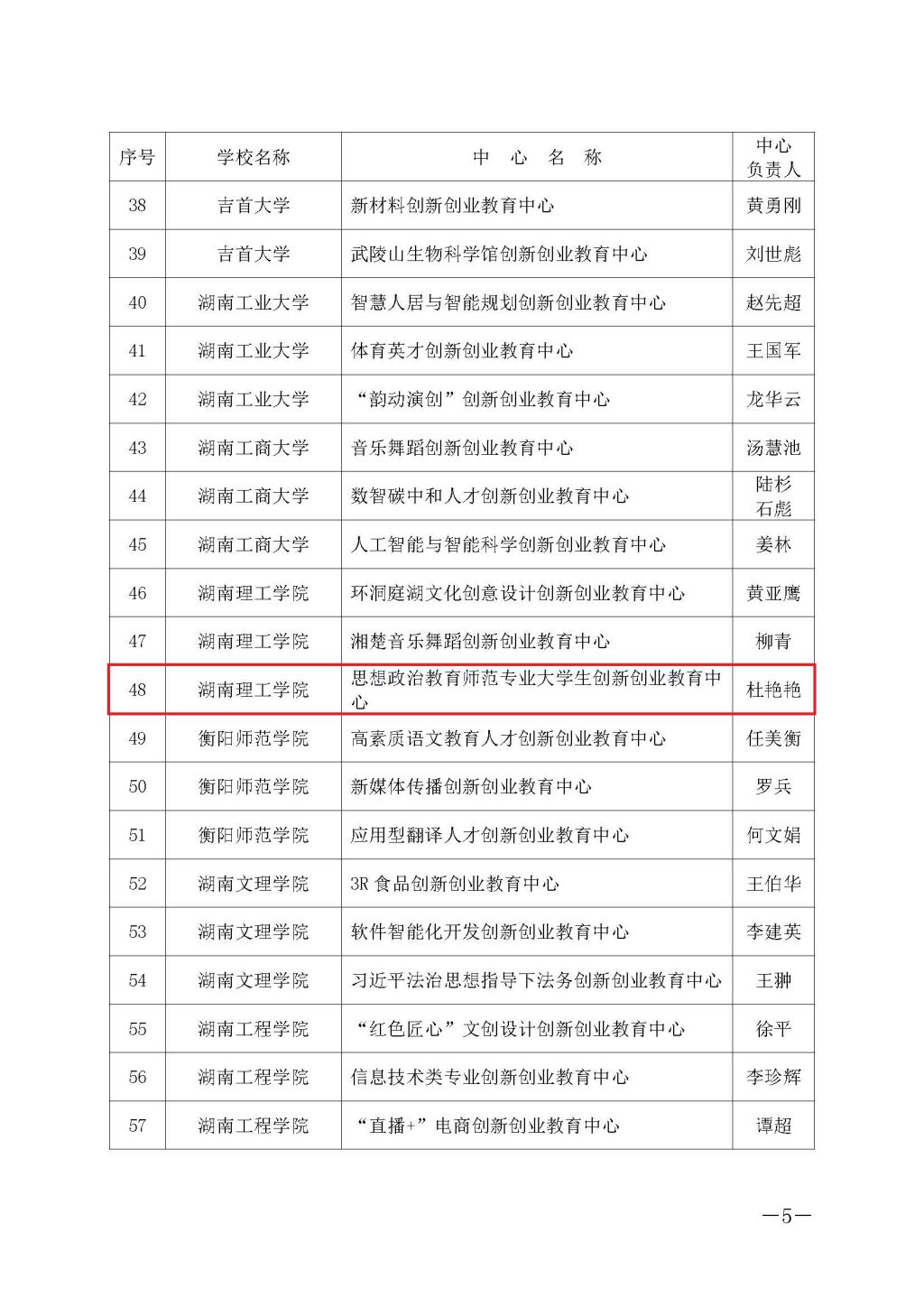 近日,湖南省教育厅发文《关于公布2022年普通高校创新创业教育中心与校企合作创新创业教育基地认定结果的通知》(湘教通〔2022〕354 号),我院思想政治教育师范专业大学生创新创业教育中心入选省级创新创业教育中心,中心负责人为杜艳艳教授。
