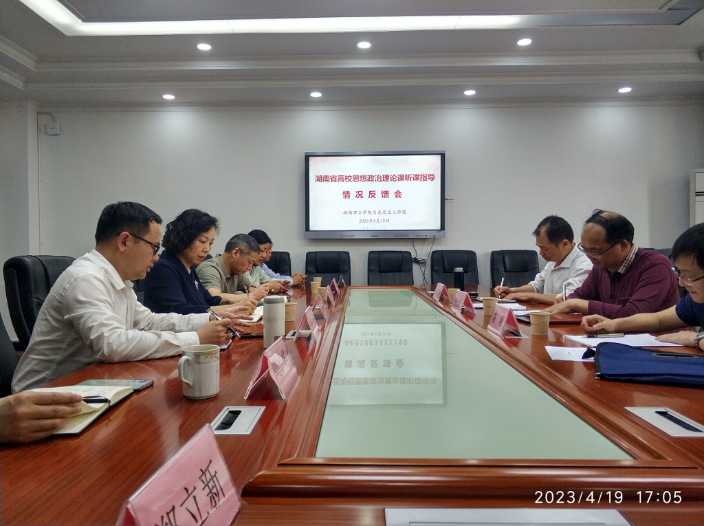 4月19日,湖南省高校思政课教指委专家邵阳学院ok138cn太阳集团原院长彭忠信、湘南学院ok138cn太阳集团党委书记廖义军、湖南第一师范学院ok138cn太阳集团院长陈明来我校调研指导思政课建设情况。