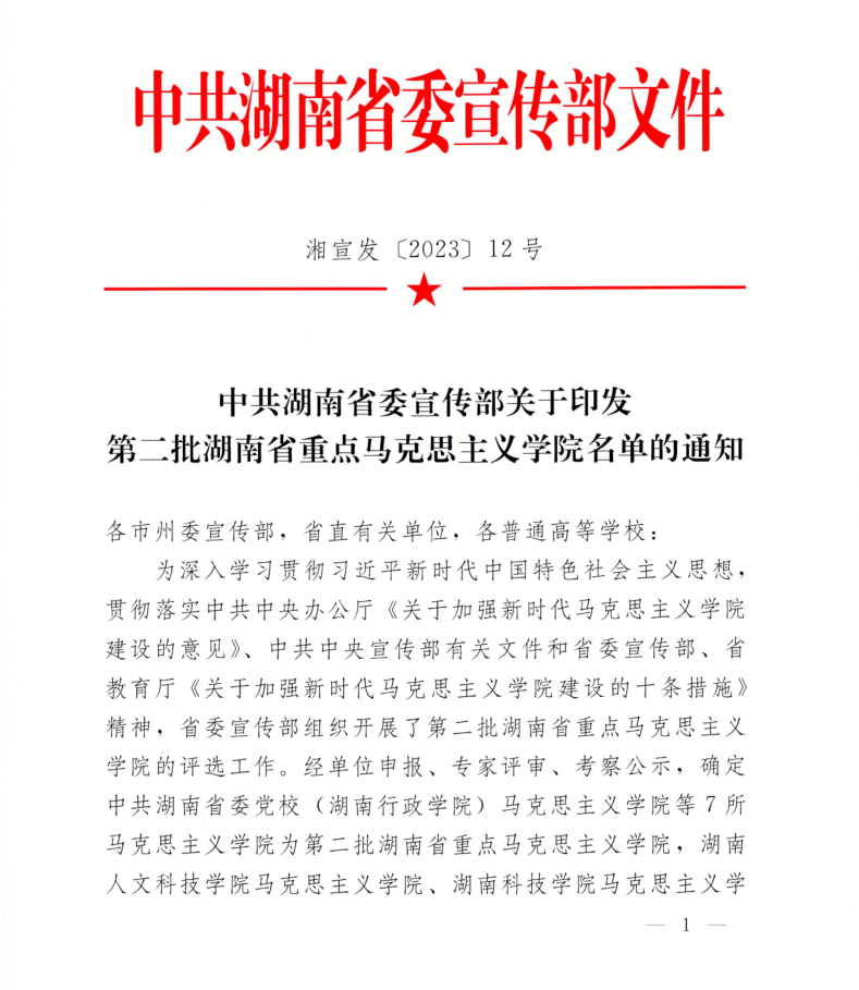 9月19日,湖南省委宣传部印发通知,公布7所第二批湖南省重点ok138cn太阳集团名单和3所培育单位名单。我院成功获批为重点ok138cn太阳集团。