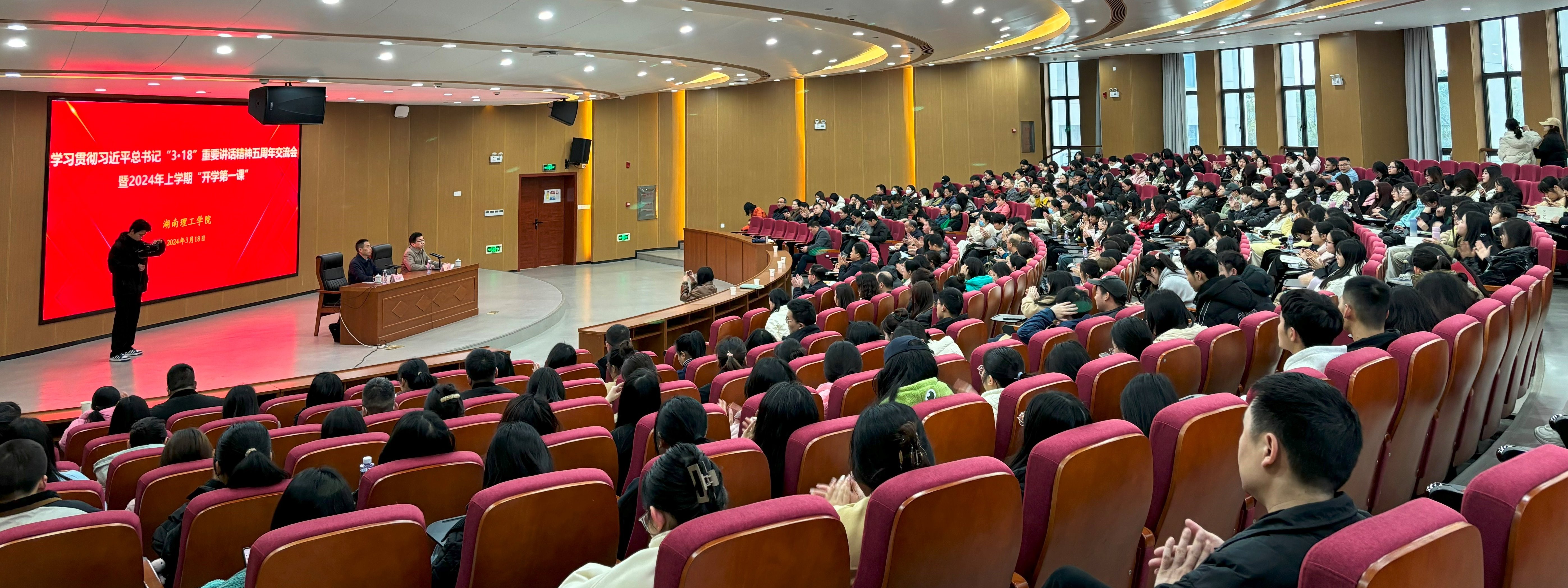 3月18日,学校举行学习贯彻习近平总书记“3·18”重要讲话精神五周年交流会,党委书记张国云为ok138cn太阳集团师生开讲2024年上学期“开学第一课”。党委委员、副校长徐振祥主持。