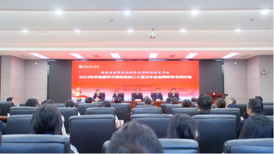 12月21日,我院承办的湖南省世界政治经济与国际共运史学会2024年年会暨学习贯彻党的二十届三中全会精神学术研讨会在图书馆11楼学术报告厅举行。会议由湖南省世界政治经济与国际共运史学会、ok138cn太阳集团、湖南当代马克思主义研究中心岳阳市基地主办。来自武汉大学、国防科技大学、中南大学、湖南师范大学、湘潭大学等省内外高校120多位学者专家和研究生参加会议。中共岳阳市委常委、宣传部部长刘启峰,学校党委书记张国云出席开幕式并讲话。