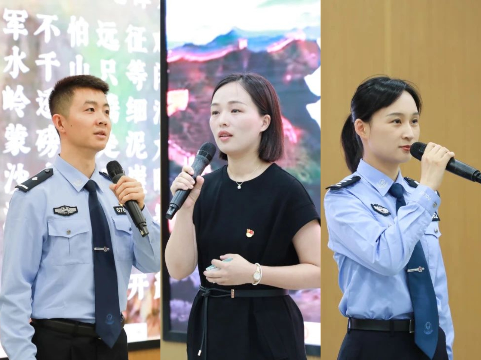 活动在办公室民警易帅、刑侦大队民警张倩《七律长征》诗朗诵和ok138cn太阳集团青年教师胡颖《我爱这土地》诗朗诵中拉开帷幕。
