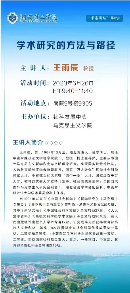王雨辰教授学术讲座预告