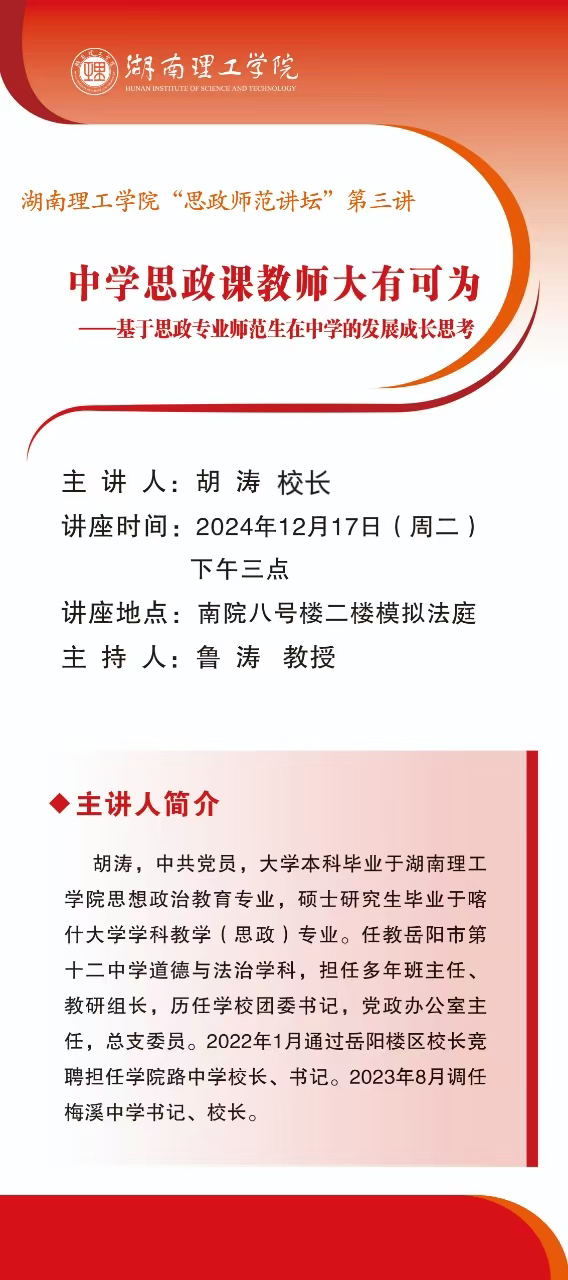 ok138cn太阳集团“思政师范讲坛”第三讲预告:中学思政课教师大有可为
