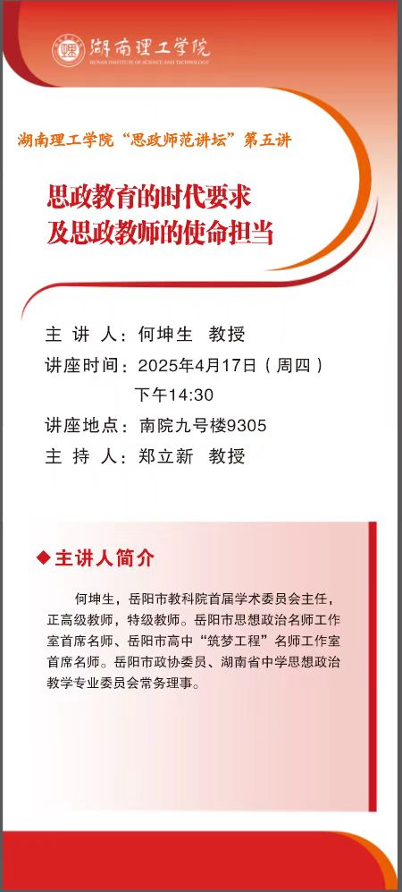 ok138cn太阳集团“思政师范讲坛”第五讲预告:思政教育的时代要求及思政教师的使命担当