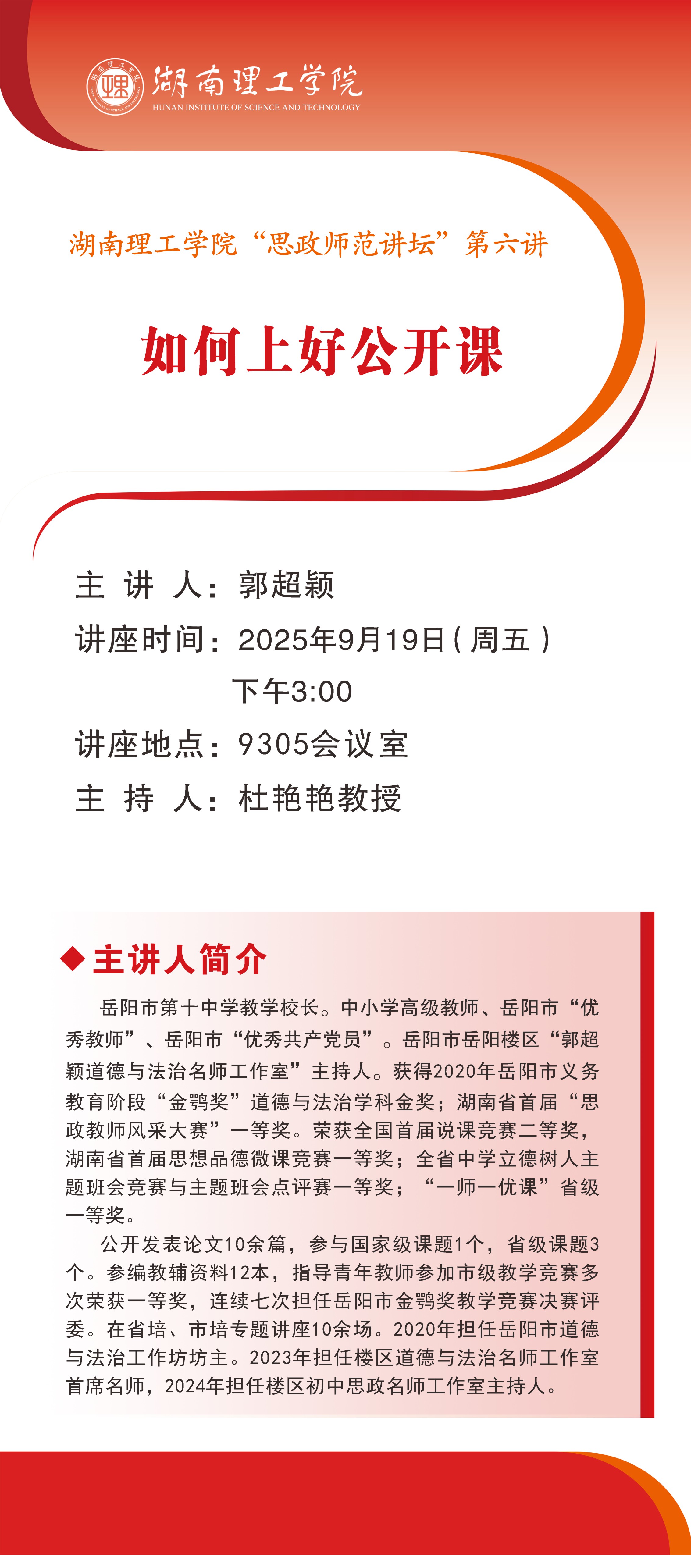 ok138cn太阳集团“思政师范讲坛”第六讲预告:如何上好公开课
