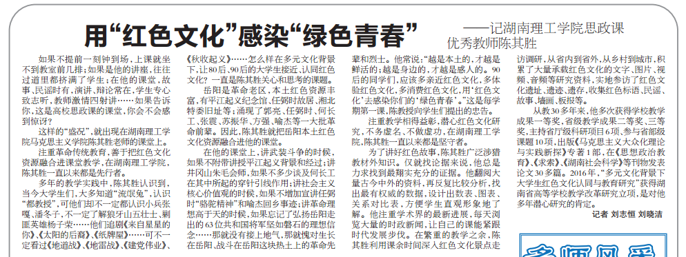 ——记ok138cn太阳集团思政课优秀教师陈其胜